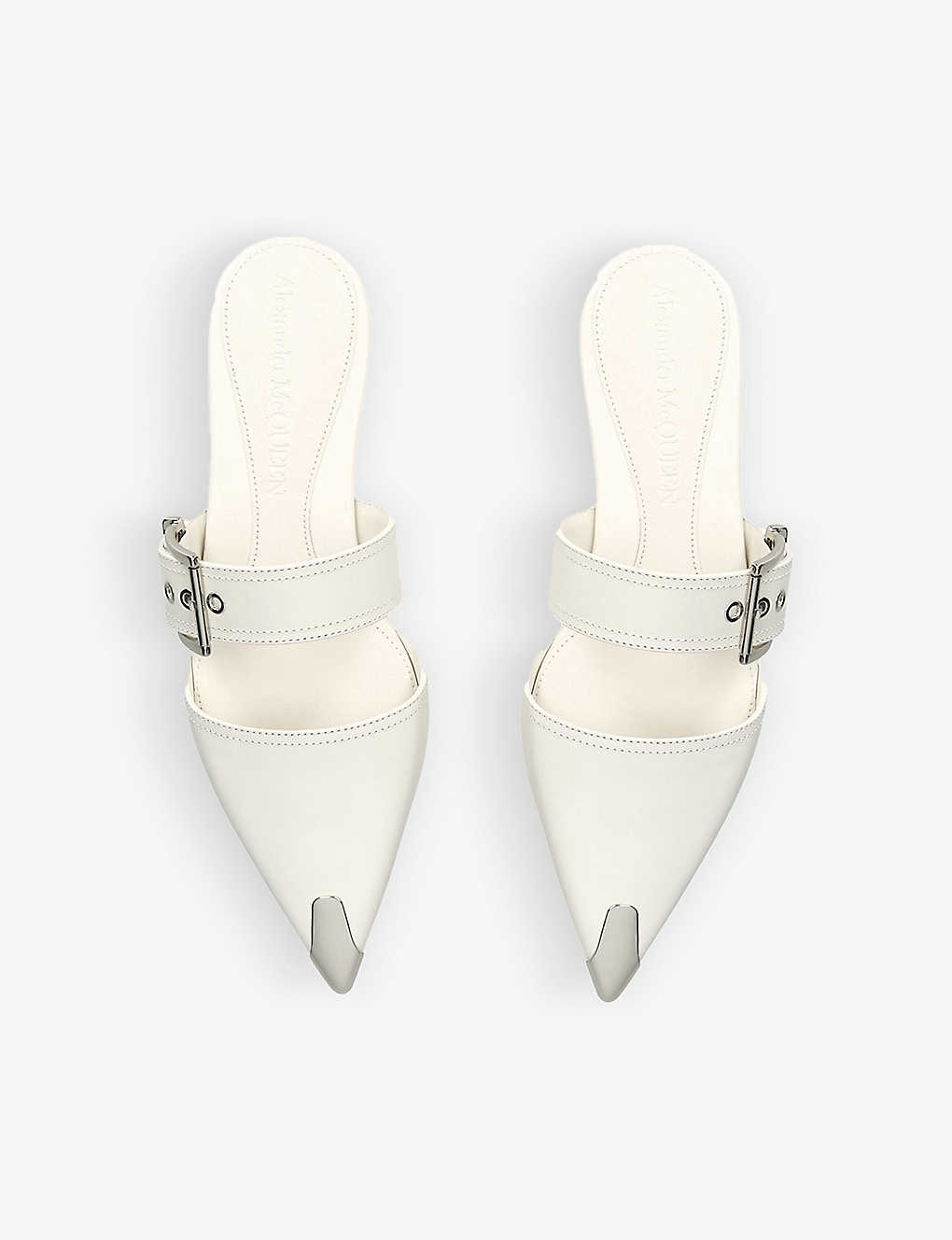 Alexander McQueen Buckle-embellished Flat-sole Leather Mules