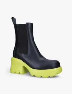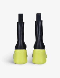 - Round closed toe, chunky contrast sole, grooves on sole, elasticated side panels, heel tab