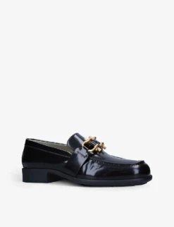 - Round toe, signature Morsetto horsebit, elasticated at back, block heel, chunky sole, gold-tone hardware