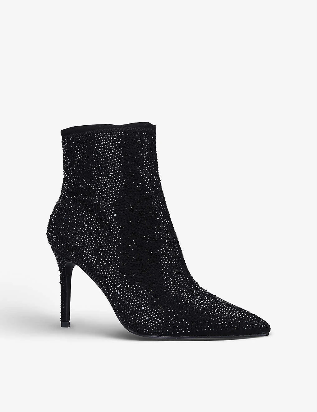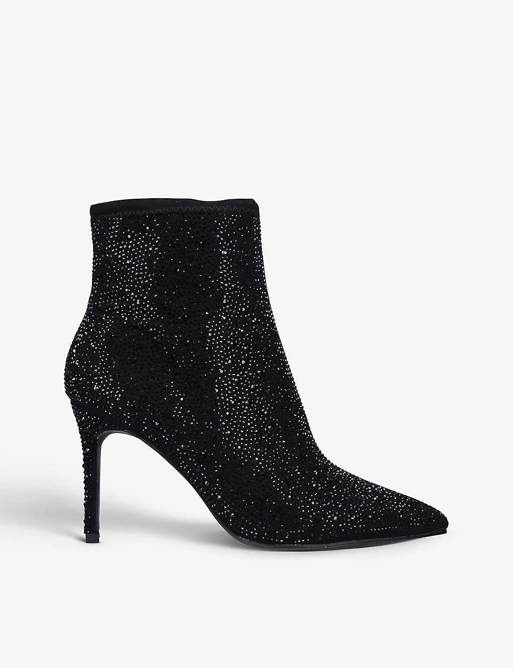- Pointed toe, stiletto heel, jewel embellishment