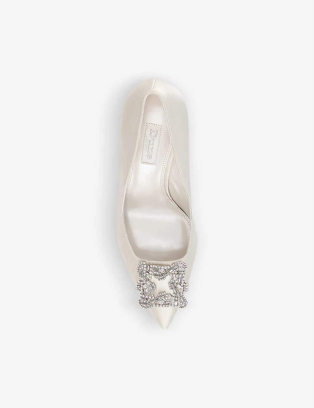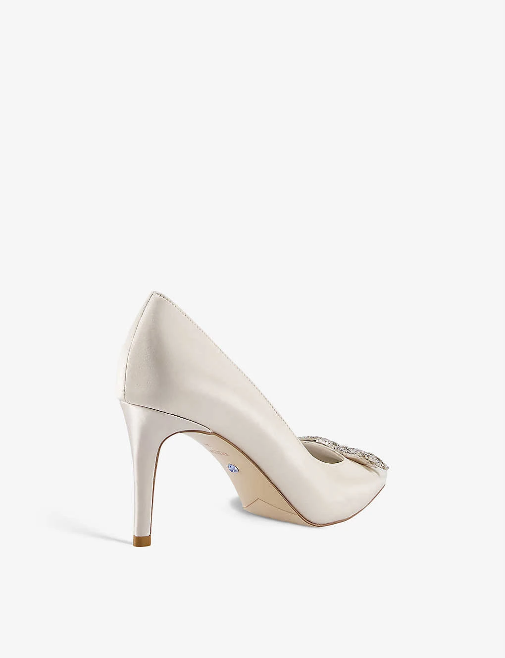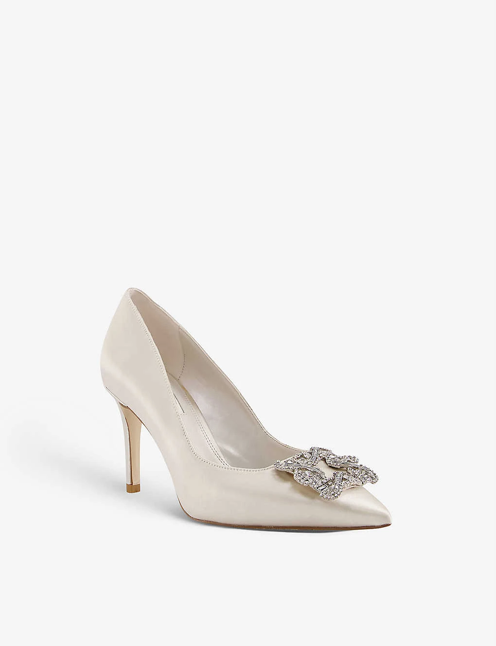 - Pointed closed toe, crystal-embellished, stiletto heel