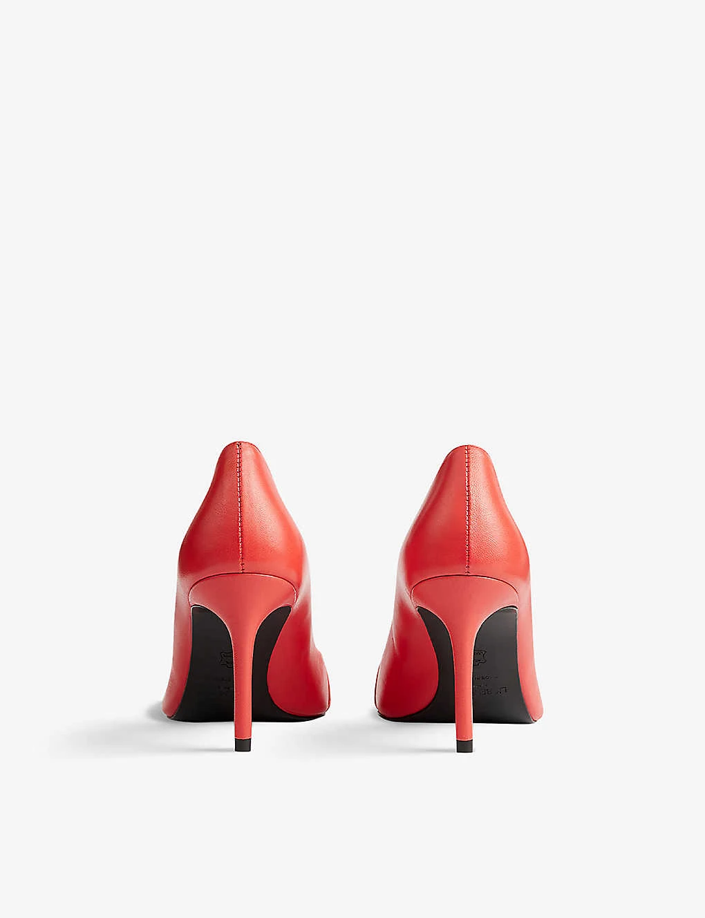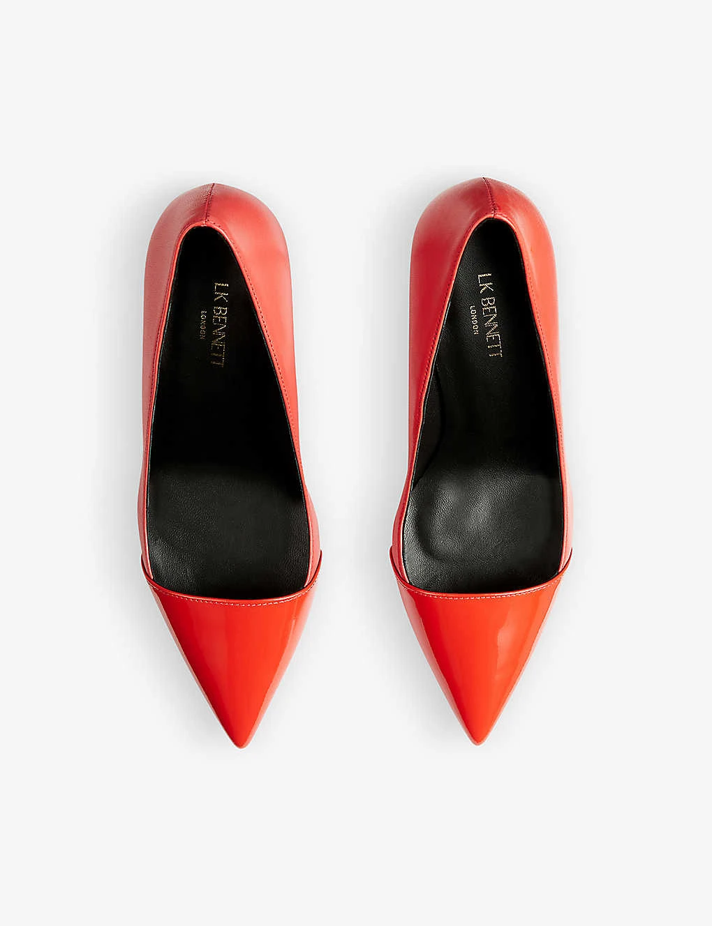 - Pointed closed toe, patient finish, stiletto heel, patient finish