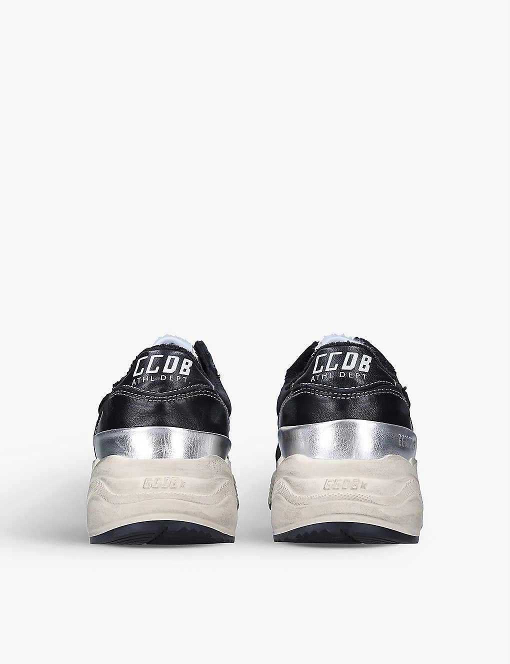 - Closed round toe, branded tongue, tonal panels, star motif at sides, brand patch at sides, chunky sole