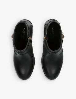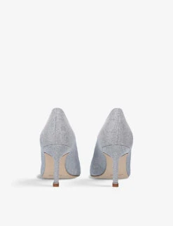 - Pointed toe, metallic upper, Swarovski crystal-embellished buckle, covered heel