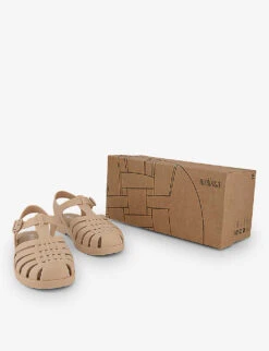 - Round toe, open toe, caged straps, cushioned footbed, adjustable straps, branded insole