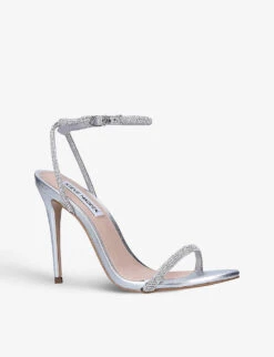 - Almond toe, ankle-buckle fastening, rhinestone-encrusted, stiletto heel