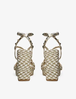 - Almond toe, open toe, braided straps, wedge heel, stud embellishment at straps, gold-tone hardware