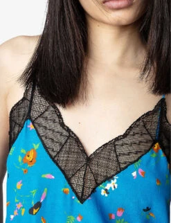 Zadig & Voltaire Christy Floral-print Lace-trimmed Woven Cami Top